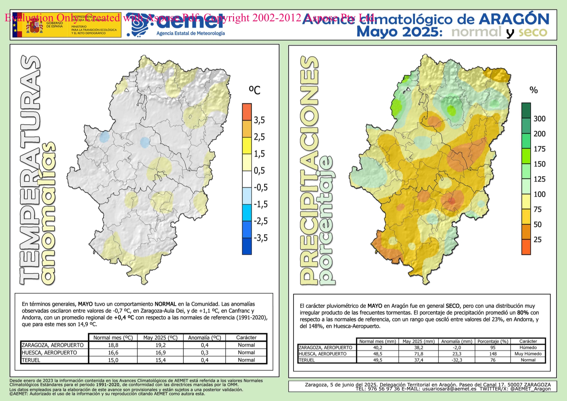 Climatología en Aragón. Mayo 2025