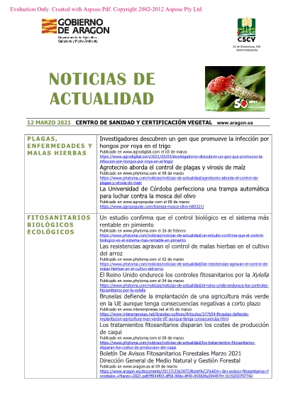 12 de marzo de 2021. Recopilación semanal de noticias sobre agricultura.