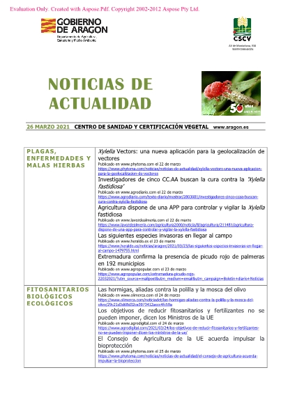 26 de marzo de 2021. Recopilación semanal de noticias sobre agricultura.