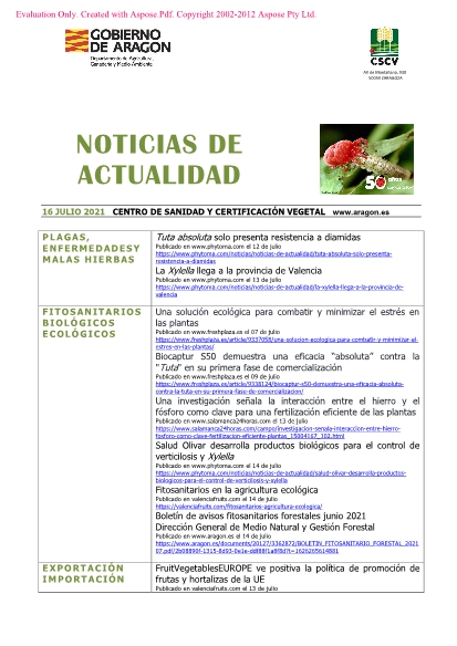 16 de julio de 2021. Recopilación semanal de noticias sobre agricultura.