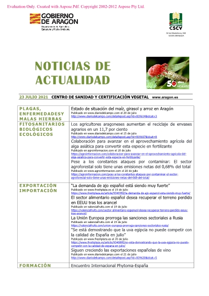 23 de julio de 2021. Recopilación semanal de noticias sobre agricultura.