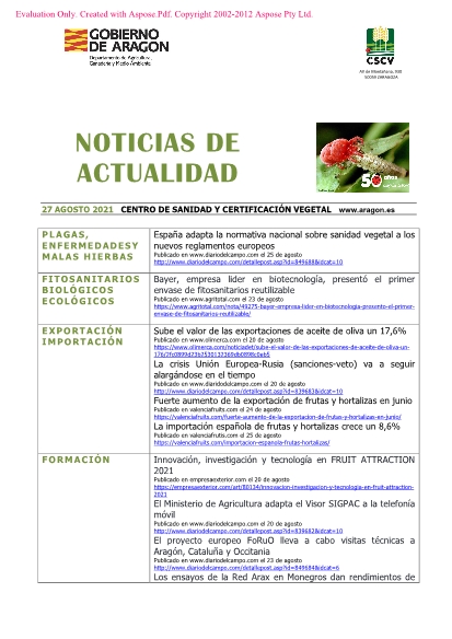 27 de agosto de 2021. Recopilación semanal de noticias sobre agricultura.