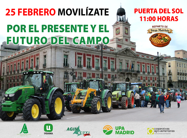 La movilización está convocada por ASAJA Madrid, AGIM-COAG, UGAMA, UPA Madrid y la Unión de Cooperativas Agrarias Madrileñas para reclamar: