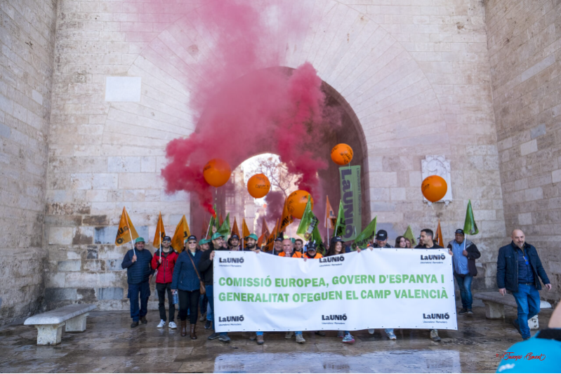 Una importante presencia de agricultores y ganaderos de La Unió Llauradora i Ramadera participa en el superjueves de protestas del campo